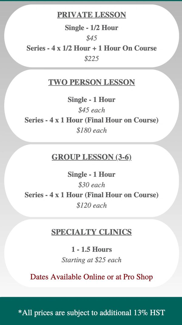 2025 AdulT Lesson Pricing